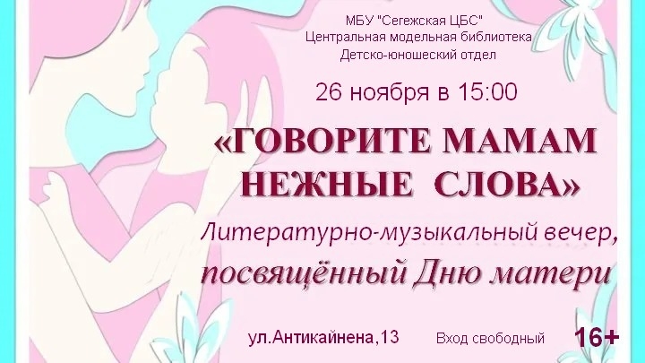 26/11/2025 Приглашаем на литературно-музыкальный вечер, посвященный Дню матери!