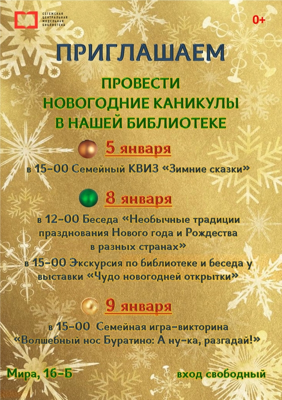 29/12/2025 Новогодние каникулы с Сегежской центральной модельной библиотекой