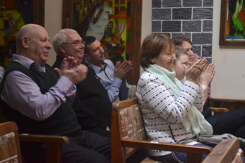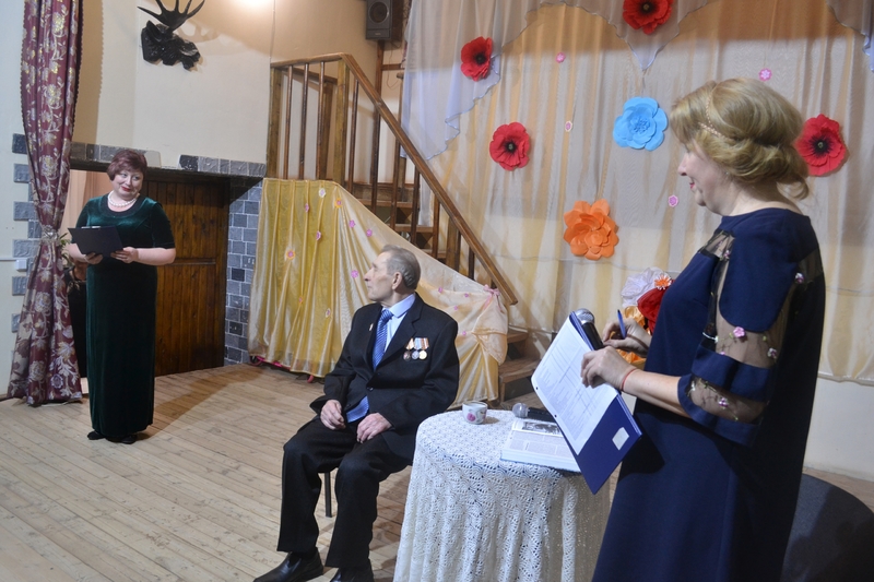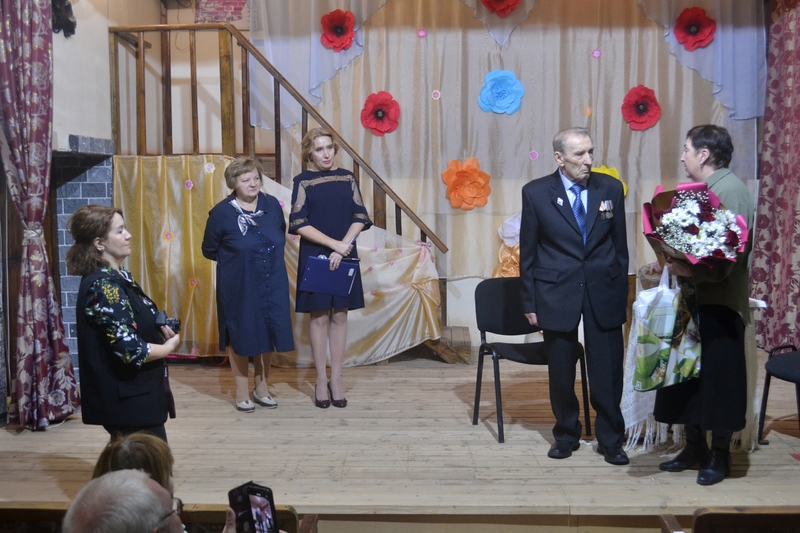 На сцене театрального зала библиотеки заслуженного юбиляра чествовали представители Совета ветеранов Сегежского муниципального округа, надвоицких ветеранских организаций, бывшие коллеги и официальные представители алюминиевого завода - все с цветами, подарками, словами поздравлений. Родные, и в зале, и на сцене поддерживали дорогого человека аплодисментами, улыбками, проявлениями теплой заботы и песнями - это творческий сюрприз юбиляру. Музыкальные подарки - песни, танцы - Николай Данилович получил и от артистов театральной самодеятельности Надвоицкой городской библиотеки, и от зятя - мужа дочери Ольги - Владимира Сурженкова.