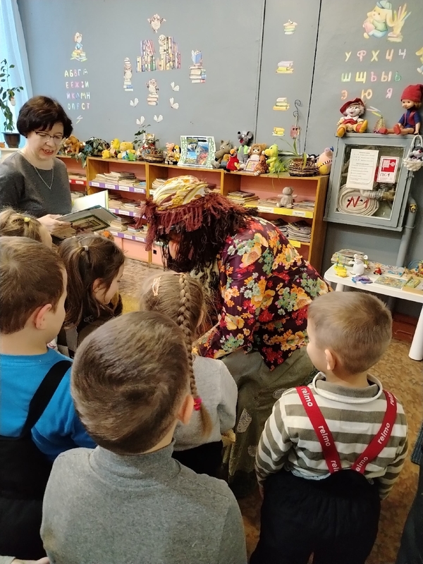 Приходила к ребятам проказница Баба-Яга, хотела себе все книжки забрать, но мы с юным читателями объяснили, что книги в библиотеке выдают на определённый срок.